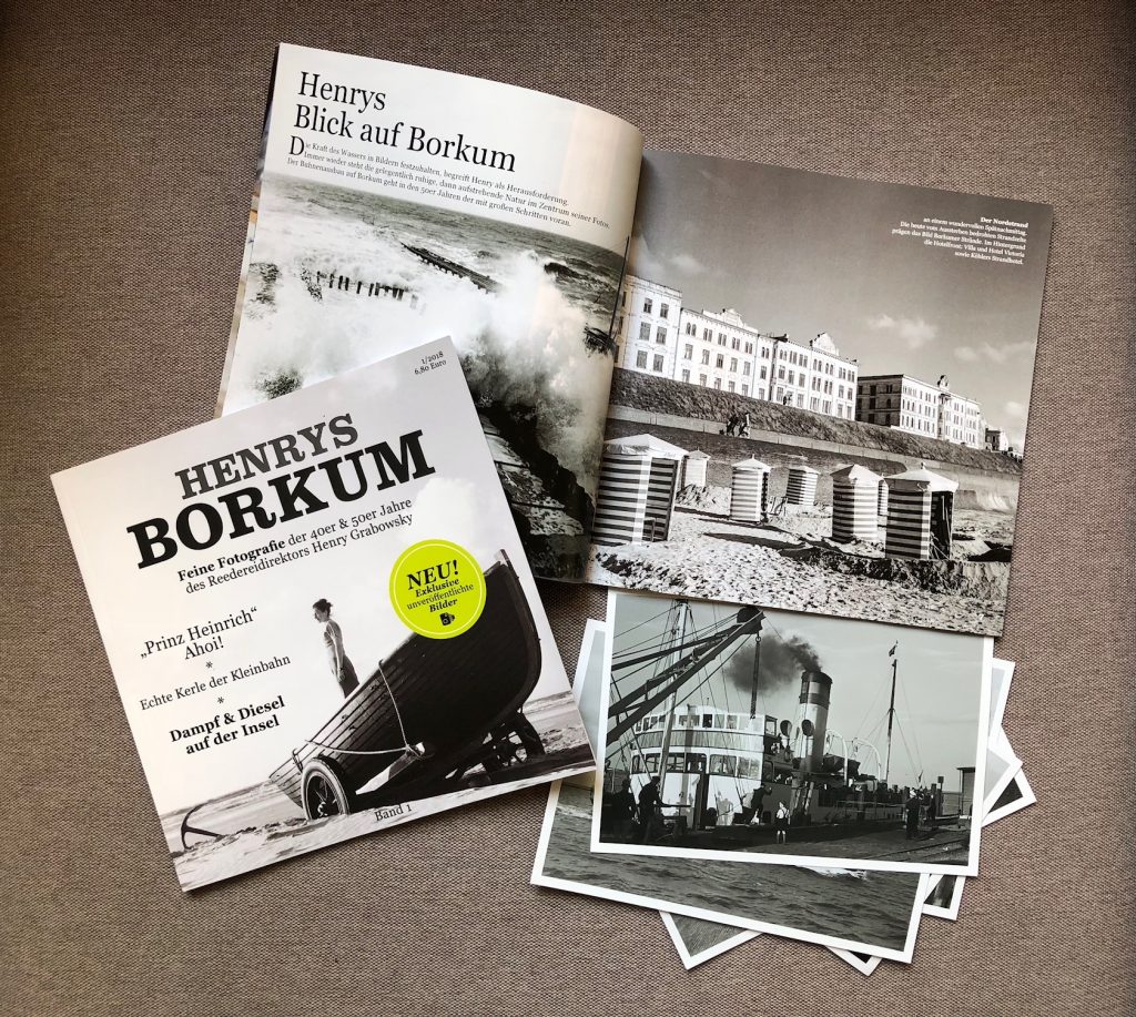 Seit heute gibt es “Henrys Borkum” auf der Insel zu kaufen (oder hier versandkostenfrei). Nach zweieinhalb Jahren Digitalisierei und Rennerei ist der erste Band fertig. Herzlichen Dank an Anja Jung, die mich beim Layout phantastisch unterstützt hat!